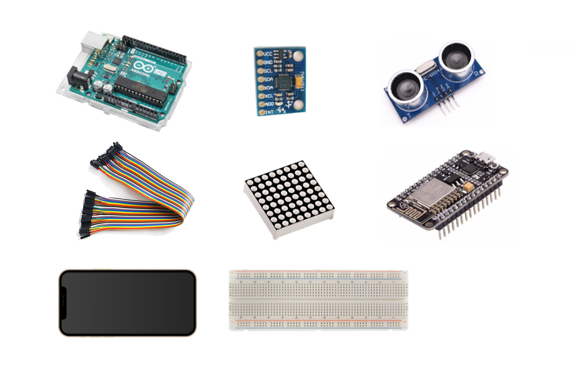 The MPU6050 sensor was used to detect the bike handlebar's rotation angle, thus defining whether the user is about to turn and the turning direction displayed on the LED matrix. In the later stage of the project, we adopted ESP8266, shiftr.io, and Noodl to achieve distance reminder screen output, which will be explained in the next sections.