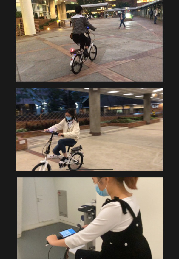 As for the environment, although we want to test in the real environment, it would be too dangerous if we test it on the road, and the campus has limited road conditions, so some situations we thought about before did not be tested, such as giving hand signals when turning at crossroads. Furthermore, when participants ride at the campus, the events are limited; what we used as approaching things are just skaters and pedestrians.