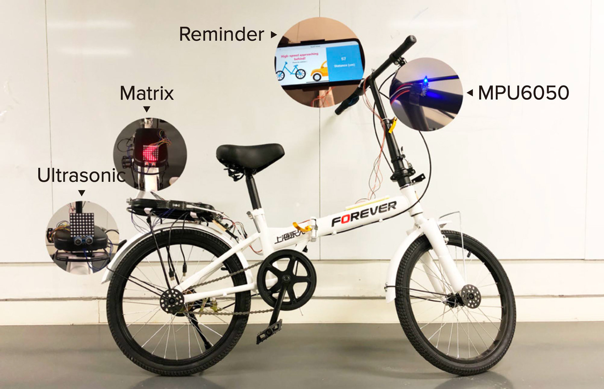 However, bicyclists will encounter some safety hazards, especially novice riding. Therefore, we designed safety indicators on the bike to assist bicyclists to have safer journeys. The prototype includes two parts: providing directional indicators at the rear when riders are about to turn and indicating distance and prompt to riders when objects are approaching.
