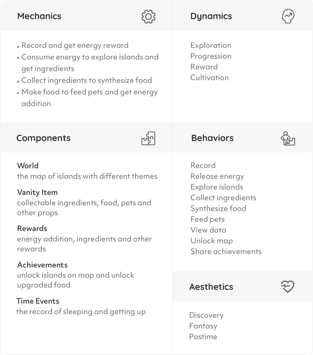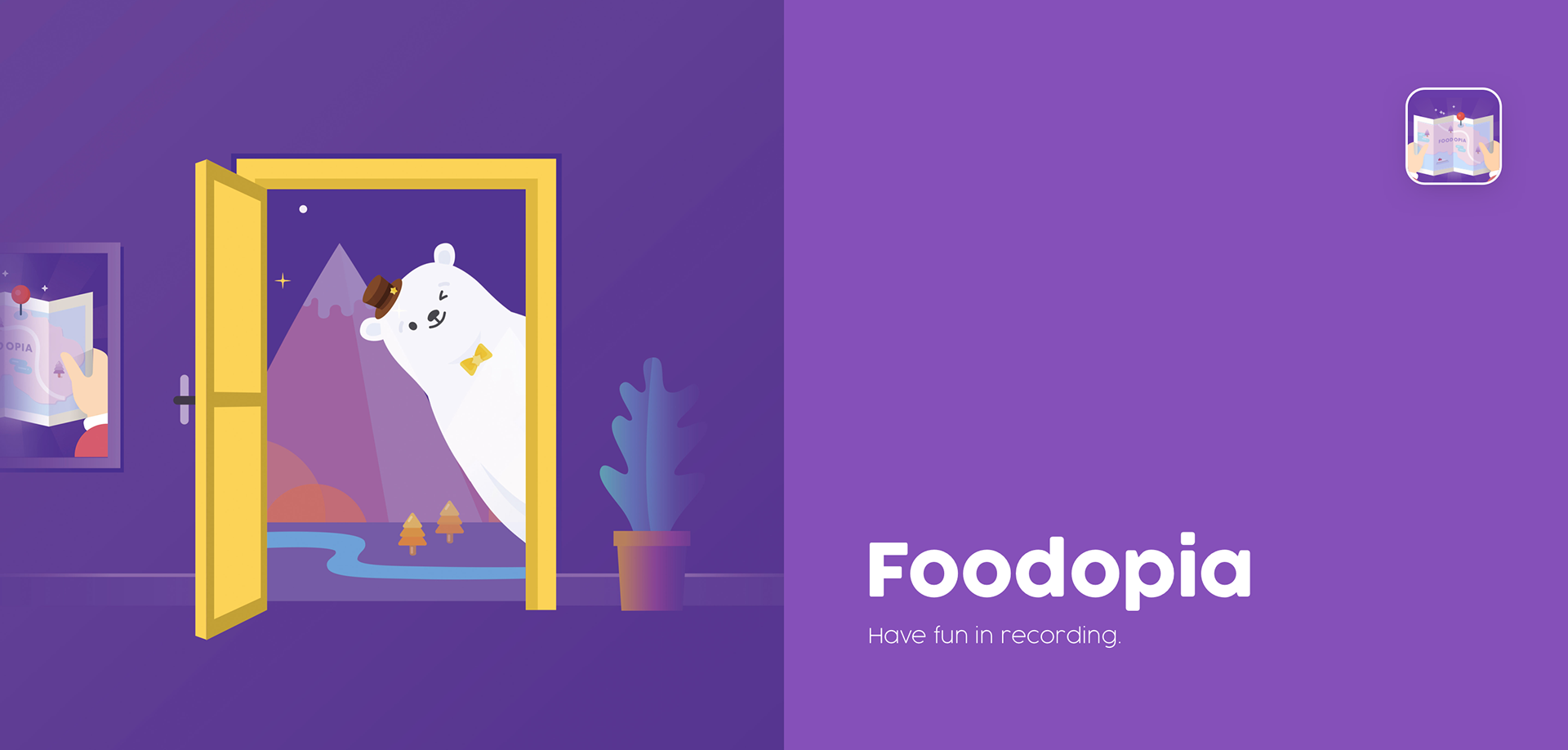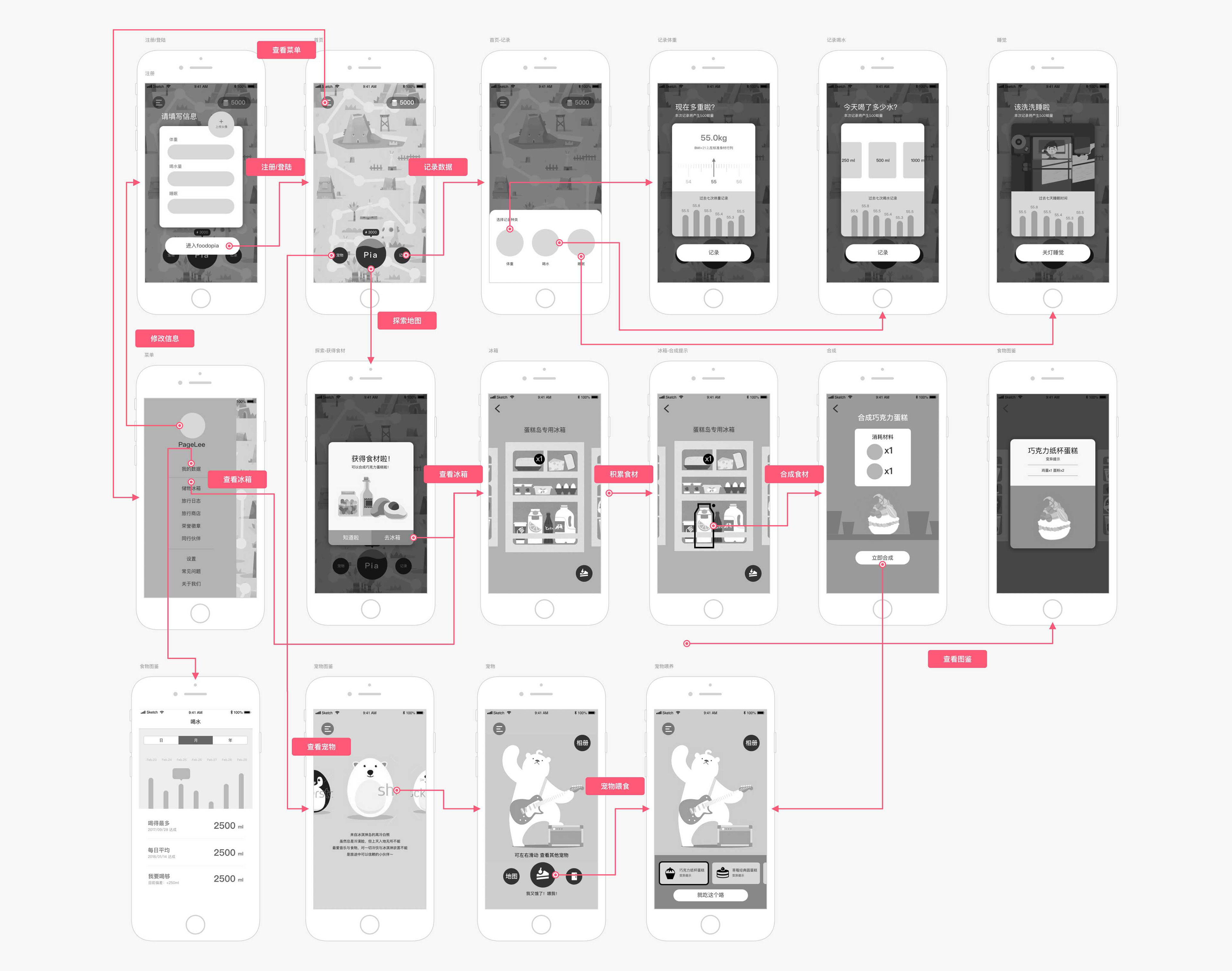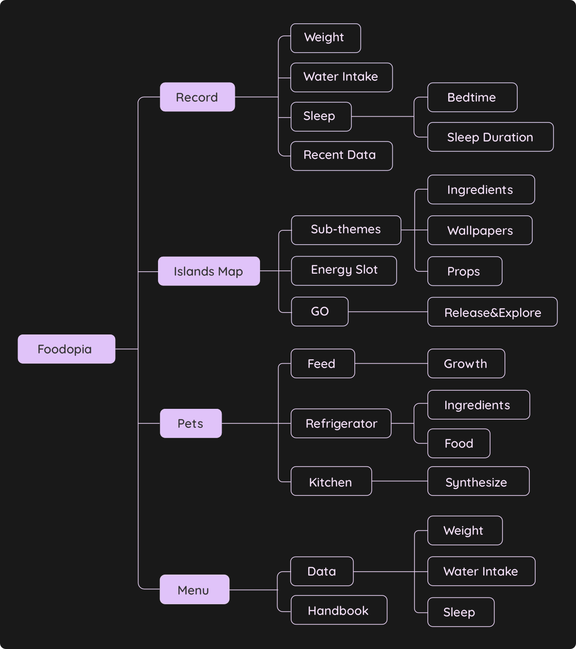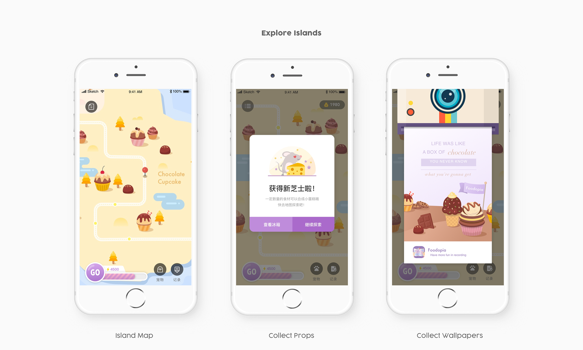 Foodopia is a recording app that is oriented by graphics and gamification experience, aiming to let users enjoy forming habits by exploring virtual islands, collecting various ingredients, making food, and feeding adorable pets.