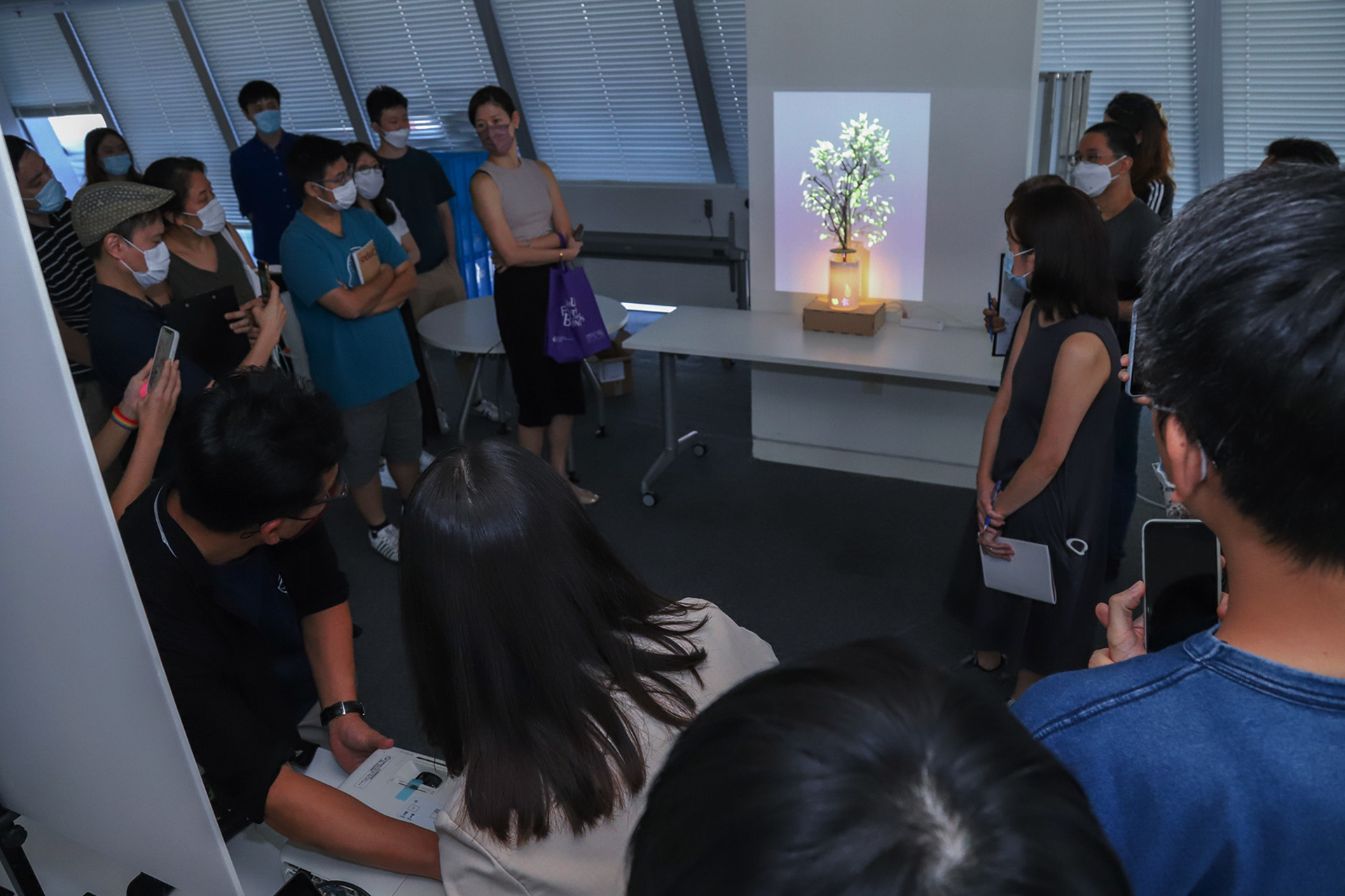 The official testing process involved both indoor and outdoor environments. Participants needed to collect plants via the web app on the campus and then observed and interacted with the lamp placed in the studio. After experiencing the prototype, the post-questionnaire and post-interviews were used to evaluate the effect and get to know the participant’s feelings.