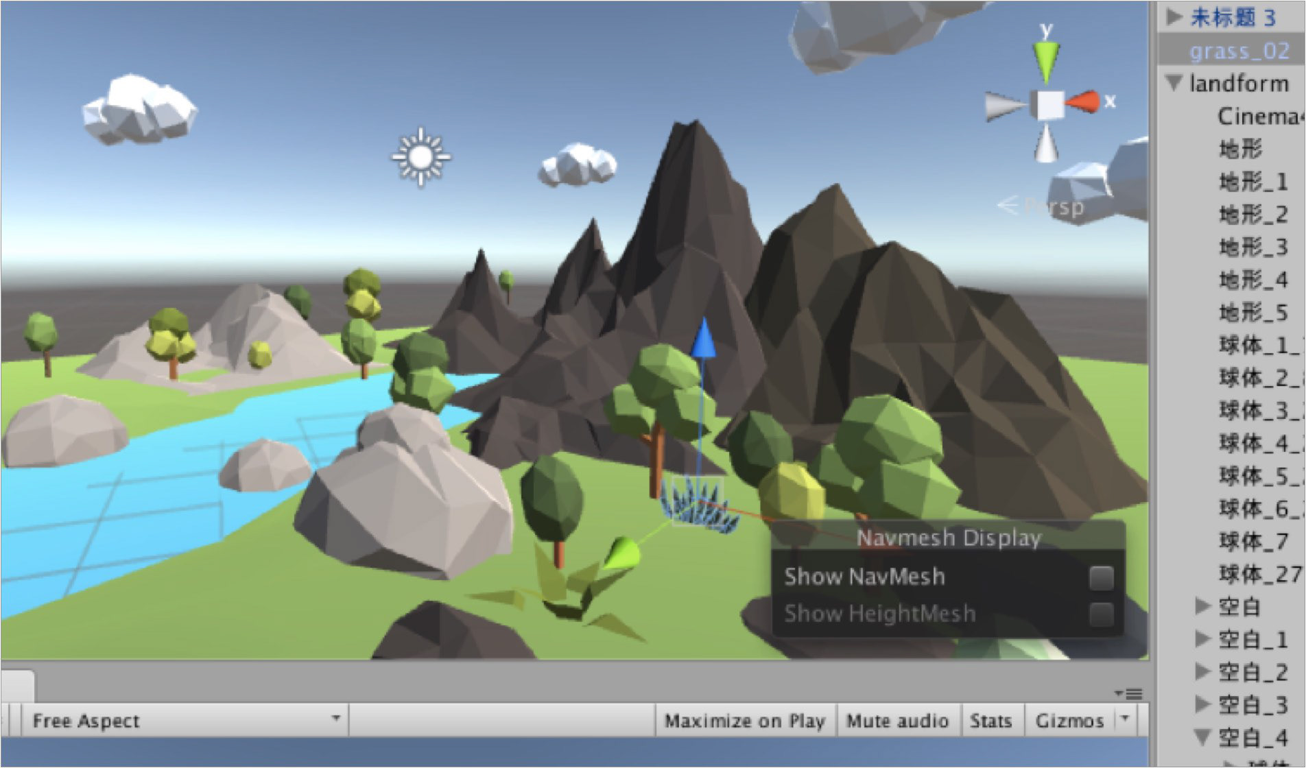 I mainly used Cinema4D and Unity to model the landscape map. It was very challenging for me to use completely unfamiliar software, but I learned them by watching the instructional videos online and following the teaching exercises, which was a somewhat difficult but interesting process. Here are some images of the map from different perspectives.